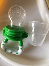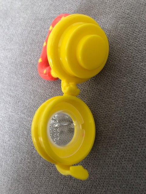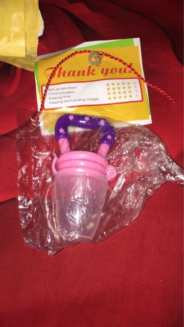 הגיע תוך שבועיים. הפיטמה מקבלת צבע של האוכל, עשוייה מסיליקון עם חורים. מידה m מתאימה לתינוק בן 6 חודשים. עדיף לדעתי להזמין את המוצץ עם הרשת מאשר את הפיטמת סיליקון שהיא פחות גמישה.