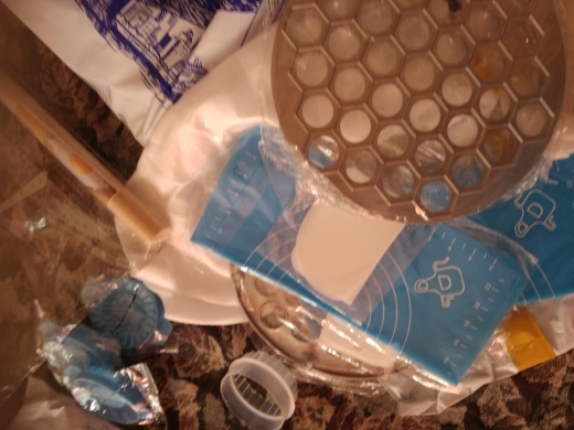 Товар шёл до Краснодара 2 месяца. Набор хороший, коврик селиконовый, 3 пластиковых ножа для теста и сама форма для пельменей.