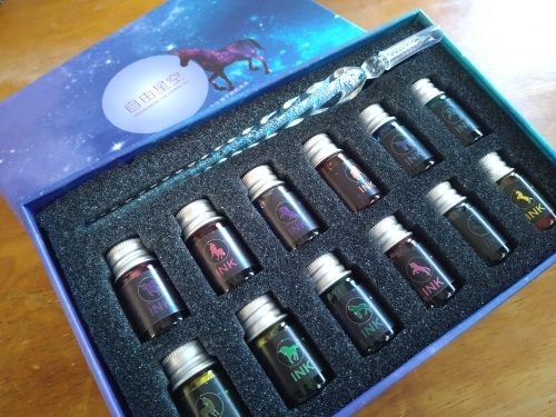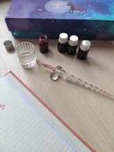 Wow ! Reçu plutôt rapidement et les encres sont juste trop belles ! Franchement, c’est la meilleure plume que j’ai jamais utilisée de toute ma vie (meilleure que celle achetées en magasin qui coûtent cher, selon moi) je recommande fortement et je vais sûrement en recommander pour des cadeaux ! L’emballage est aussi très magnifique et l’intérieur bien protégé. Un excellent rapport qualité/prix !