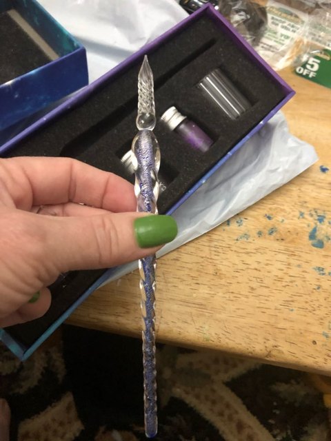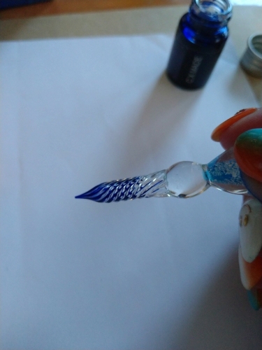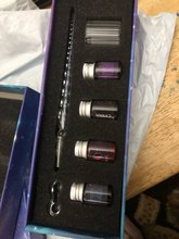 полный восторг. удивительно красивая вещь. пришло целое, ничего не разбито и не разлито. правда пишет чуть толще, чем хотелось бы. но это ерунда.