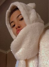 Очень мягкая с длинным шарфом. пришла быстро. Эта шапку лучше носить зимой, поэтому пока не пробовала.