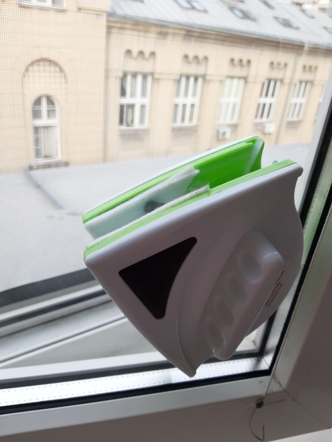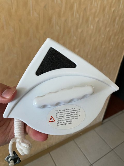 Великолепная щётка, с моим двойным стеклопакетом справился отлично. Магнит очень мощный, муж не знал и при смыкании прищемил до синяка палец, щётка примагнитилась даже к двери (4см), но при движении падает. Мыть удобно, не тяжело, справляюсь без помощи мужа. доставка не супер мега быстрая, но я ей довольна.