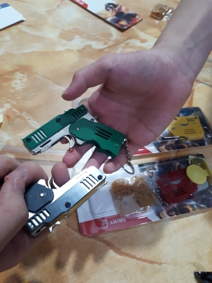 No viene en blister como se anuncia. Solo una bolsa de plastico con una pequeña diana y una bolsita de gomas. Envio rapido. Funciona bien.