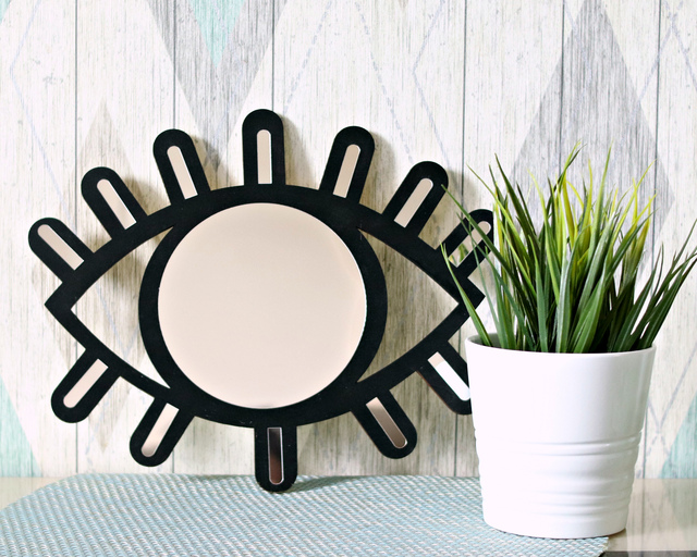 Настоящая находка для любителей экстравагантных вещей и необычных элементов декора- зеркало в форме глаза. Оно сразу привлечёт к себе внимание и стильно дополнит современный интерьер. Основа зеркала выполнена из фанеры. На неё наклеены акриловые зеркала, которые были заклеены защитной плёнкой. Размер зеркала- 30*26 см. Акриловые зеркала устойчивы к разбиванию. Обладают прекрасной отражающей способностью . Намного легче стекла, поэтому крепится к поверхности с помощью специального двустороннего скотча. Скотч в комплект не входит.