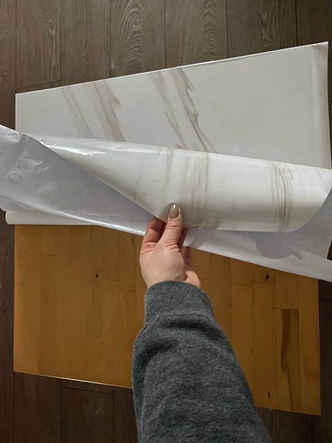 Наклеела на доску для фото фона. Размер конечго мне мал. Но смотртьтся красиво